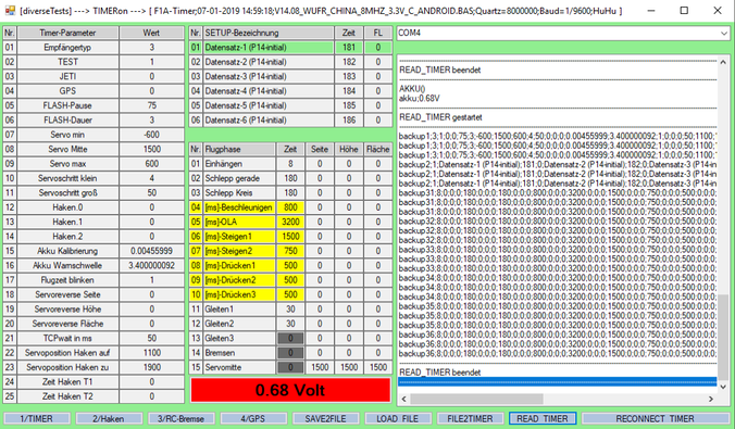 Für einen problemlosen Flugbetrieb ist die Eichung der Akkuspannung unerlässlich. Nur so kann gewährleistet werden, das bei schwächer werdendem Akku noch rechtzeitig die DT-